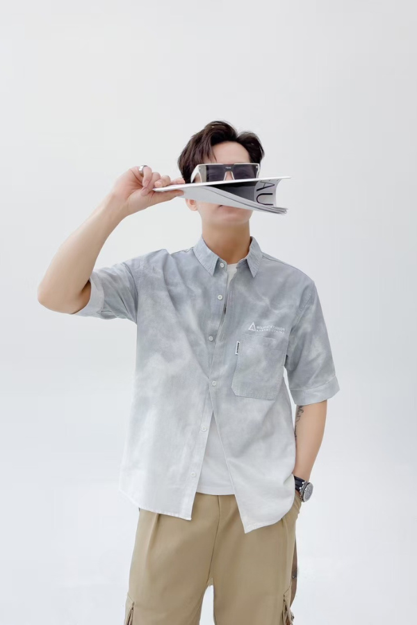 Elevate your everyday look with the Cloud Fade Utility Shirt – where modern design meets effortless cool. Featuring a soft grey gradient wash that mimics drifting clouds, this shirt blends minimal aesthetics with streetwear edge. The chest pocket with printed detailing and sharp collar gives it a functional, clean-cut vibe that stands out without trying too hard.